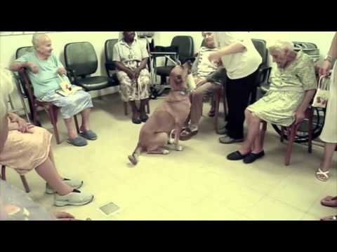 Aquí os dejo un vídeo de una sesión de terapia asistida con perros. Es muy interesante y se ven diferentes actividades que realizan los ancianos.